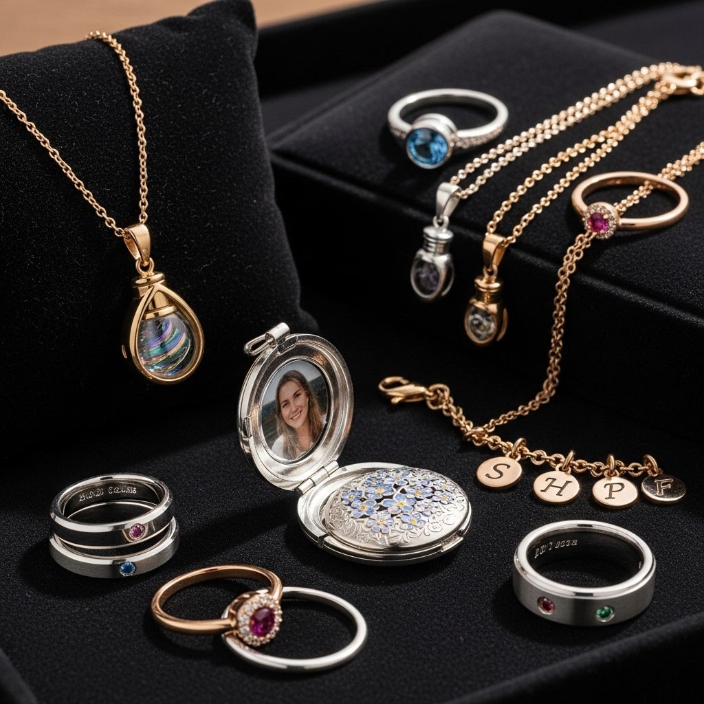 Memorial jewelry provides a discreet and personal way to keep your loved one close. These pieces are designed to hold a small amount of cremated remains or a lock of hair. Some common types of memorial jewelry include: